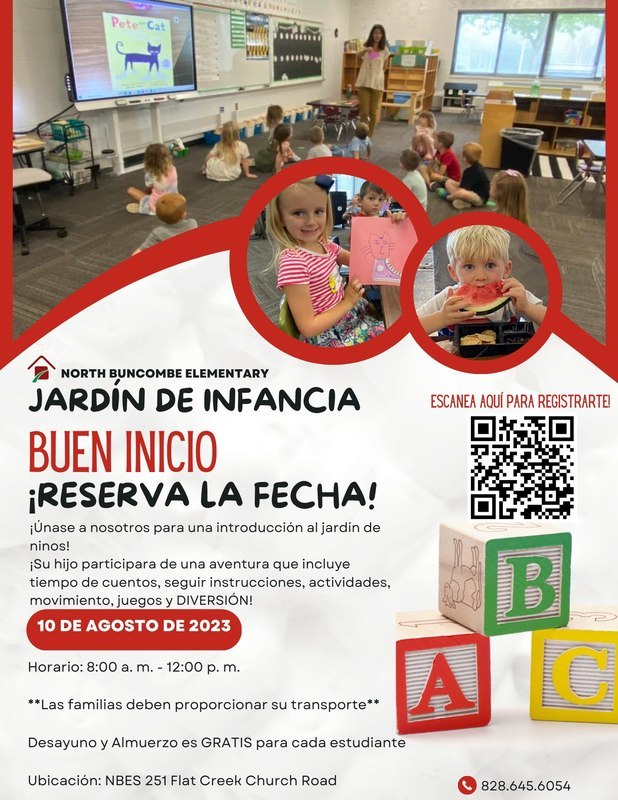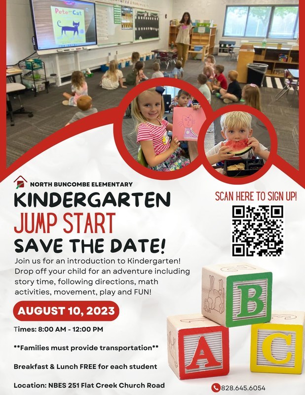 Here is an opportunity for all of our upcoming Kindergarten students to visit our school in August to get ready for the 2023-2024 school year! Scan the QR code to sign up for K Jump Start or call the school at (828) 645-6054.